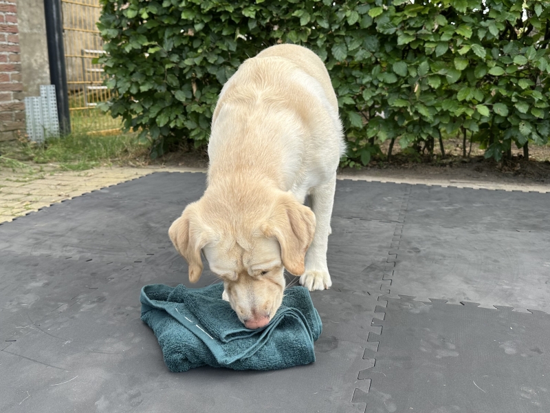 Lees voordat je start de opdracht door en nog één keer je stappenplan. Dan heb je voor jezelf helder hoe je het materiaal stap voor stap kunt opbouwen, maar ook wanneer je juist een stapje terug kunt doen als je hond dat nodig heeft.